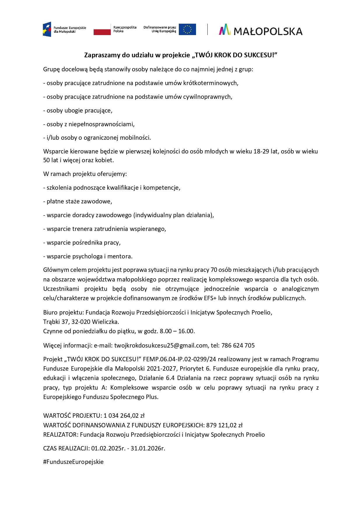 Plakat projektu Twój krok do sukcesu
