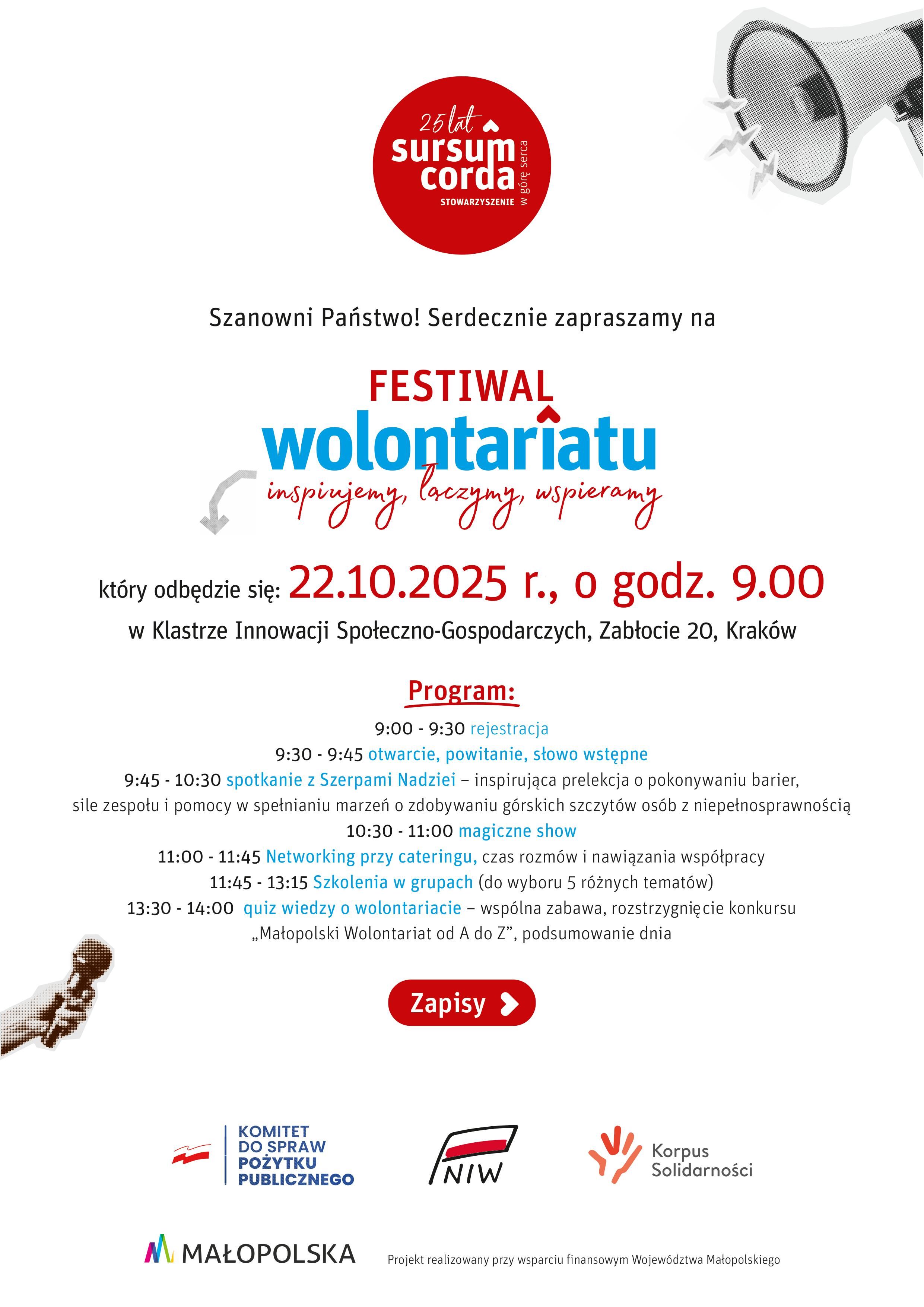 Zaproszenie na II Małopolski Festiwal Wolontariatu "Inspirujemy, Łączymy, Wspieramy"