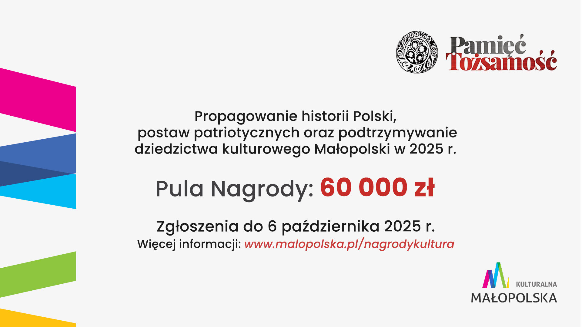 Nagroda "Pamięć i Tożsamość" – dla osób i organizacji działających na rzecz pamięci historycznej oraz tożsamości narodowej. Pula nagród: 60 000 zł.